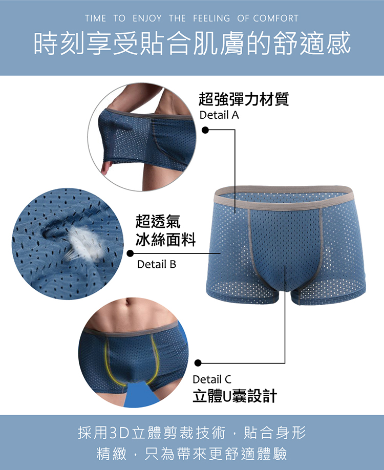 夏日必備的輕薄冰絲內褲,整件都是透氣網孔!面料親膚,透氣排汗,速乾涼爽,不怕悶熱超自在,舒適又好穿!